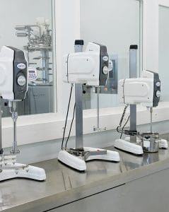 Le Turbotest®, conçu et fabriqué en France par VMI, permet de mettre au point des formulations en fonction de la rhéologie du produit. Cet agitateur, présent dans un laboratoire sur deux en France, est idéal pour tout essai de formulation, test de qualité, mise au point de nouveaux produits et procédés. Le Turbotest® a été conçu pour travailler à l’échelle du laboratoire, dans des perspectives d’extrapolation à plus grande échelle : il assure la validation des paramètres process (type de turbine, homothétie cuve/outil, vitesse périphérique de l’outil), qui seront transposés pour une fabrication industrielle.